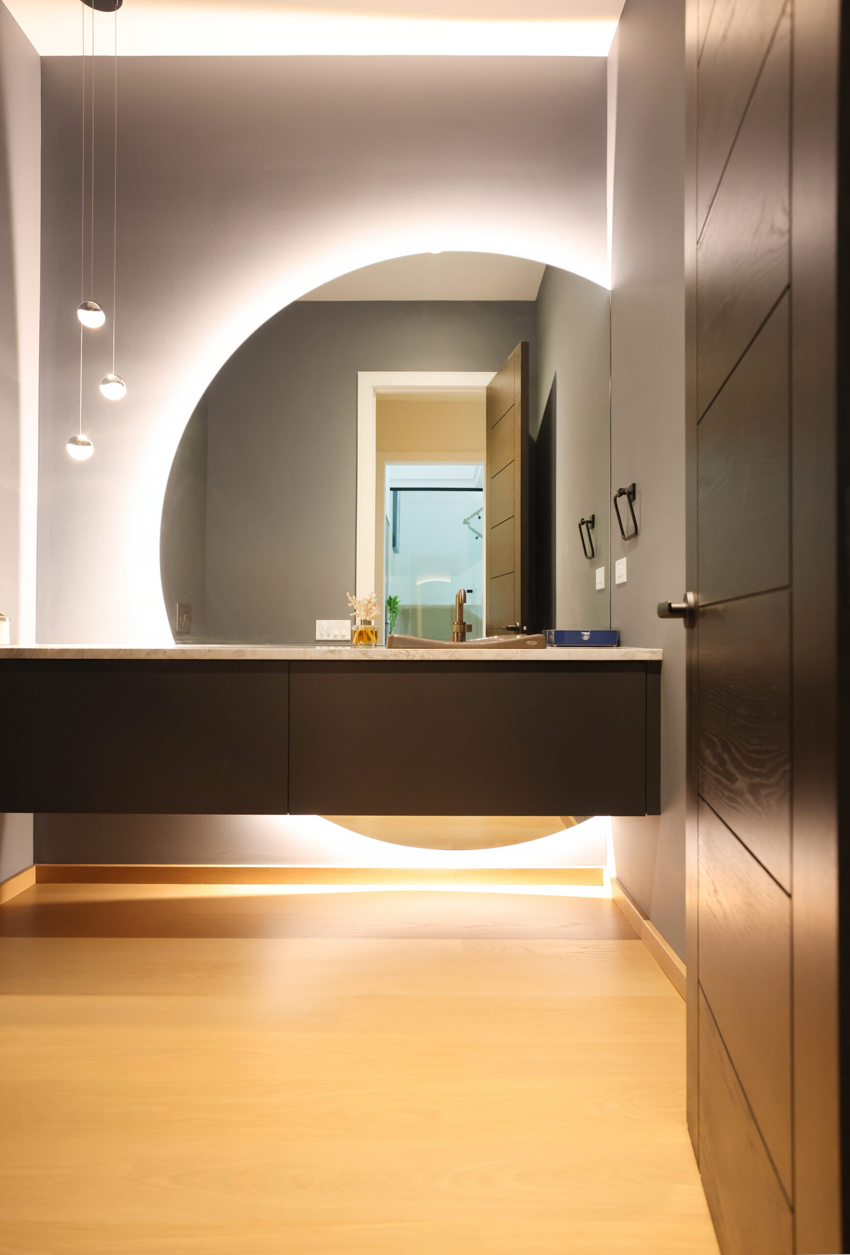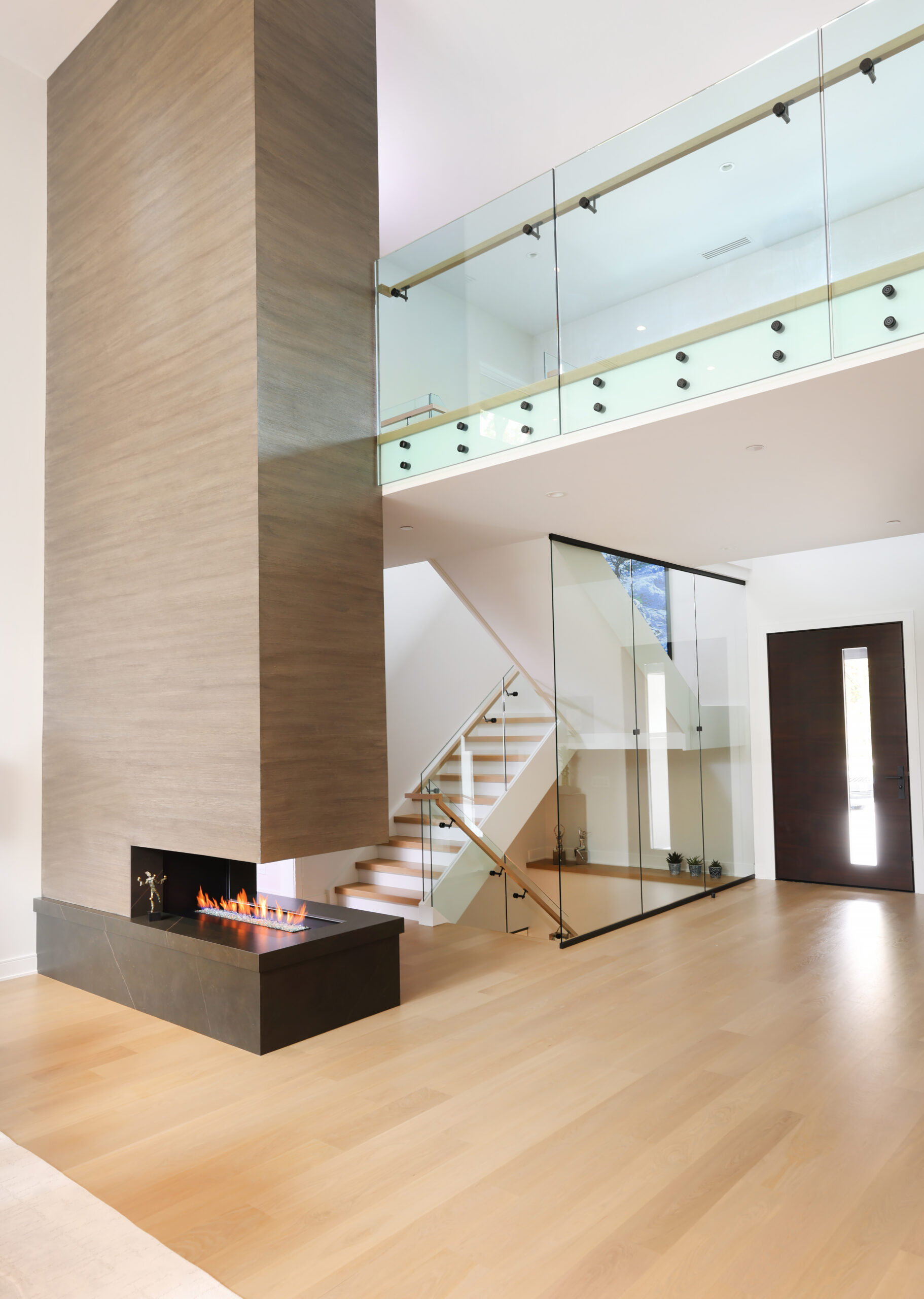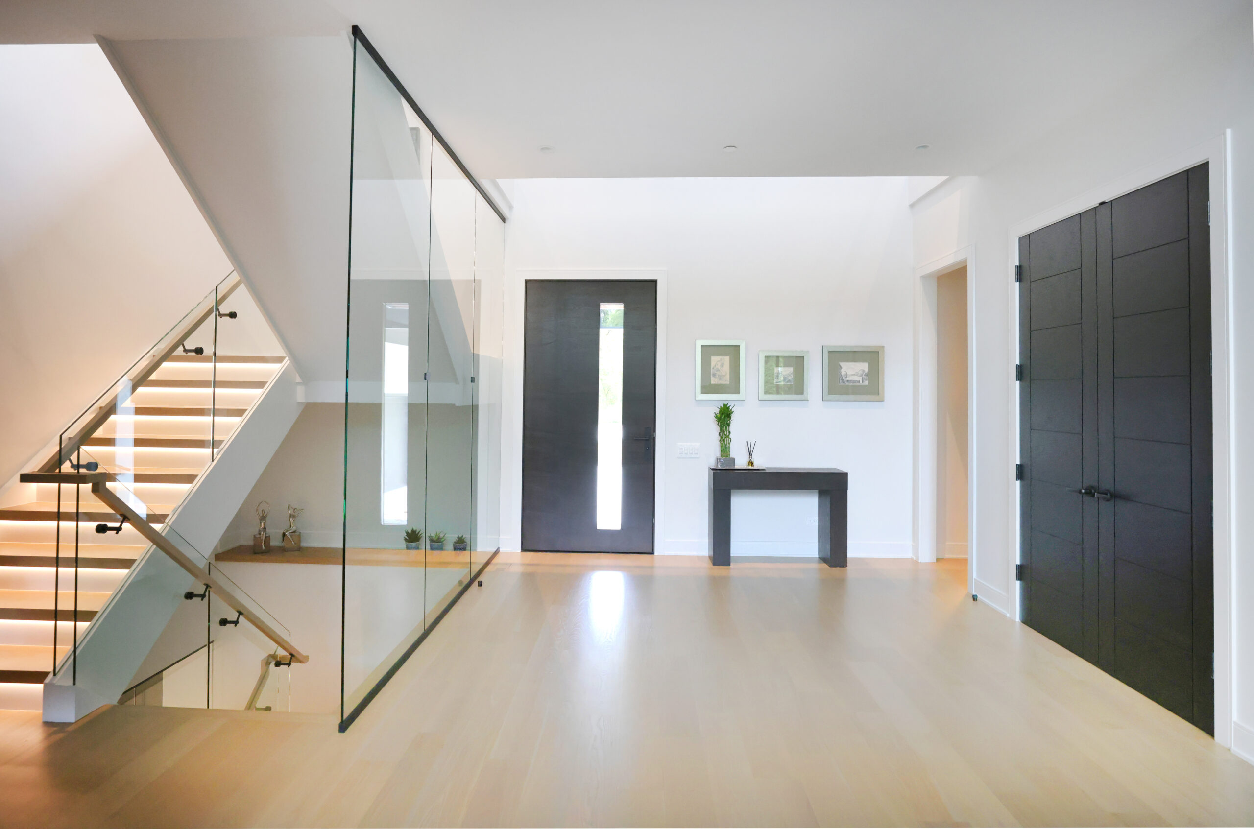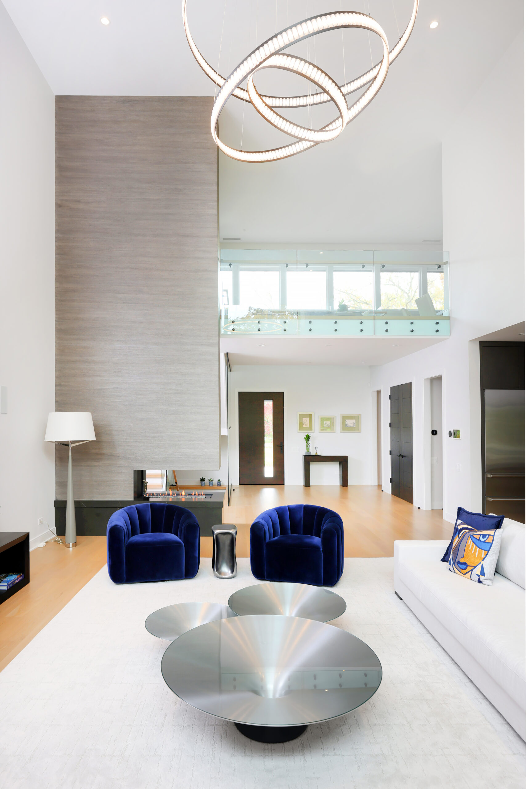 This sophisticated 5-bedroom, 4.5-bathroom Lake Forest custom home exemplifies modern European luxury living, thoughtfully designed for gracious retirement comfort. The striking architectural design makes a bold contemporary statement while maintaining elegant functionality throughout. FORMLINEA Design Build crafted an open-concept floor plan for the semi-public spaces, creating seamless transitions between living areas. The home’s innovative smart technology integration complements its architectural features, including a dramatic floating glass staircase and state-of-the-art radiant walls that elevate both comfort and design.
